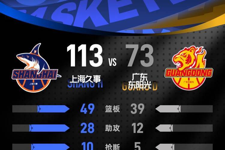 最后一节的比赛开始,上海久事迅速将分差扩大至51分,展现出强大的实力。在小节后段,广东东阳光展开反击,试图缩小比分差距。本节中,上海久事的肯尼思·洛夫顿再获10分,其中包括2记三分球。最终,上海久事以113-73赢下比赛。